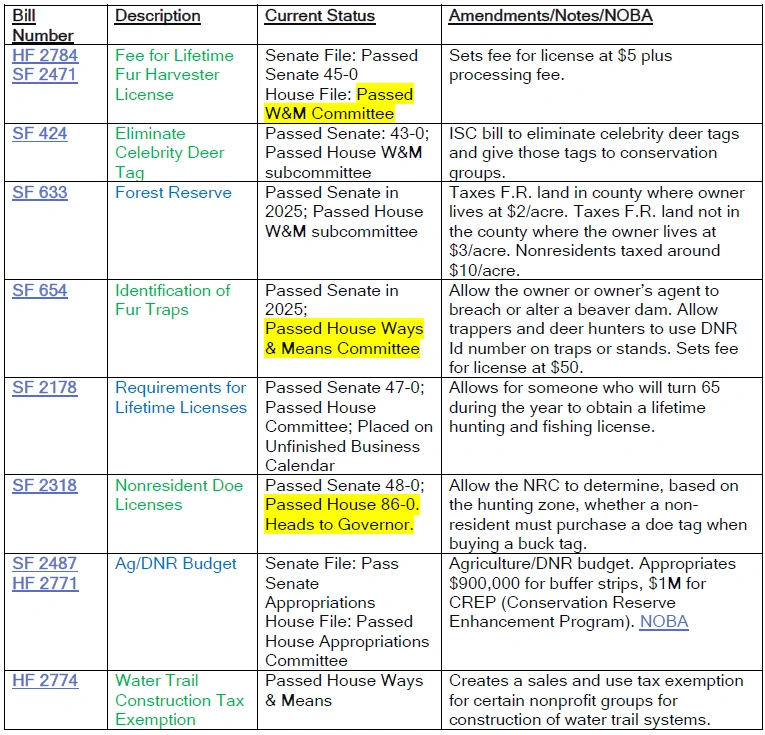 We saw great success this week with the passage of the nonresident doe tag bill—let’s keep that momentum going. Your advocacy has been critical throughout the session, and this is the final push to help get SF 424 across the finish line.
