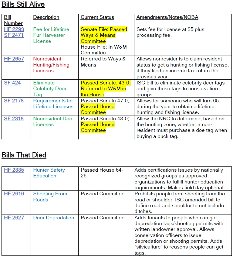 Please keep the momentum going by contacting your House members and urging them to support our two ISC-backed bills, SF 424, eliminating the celebrity deer tag, and SF 2318, NRC flexibility